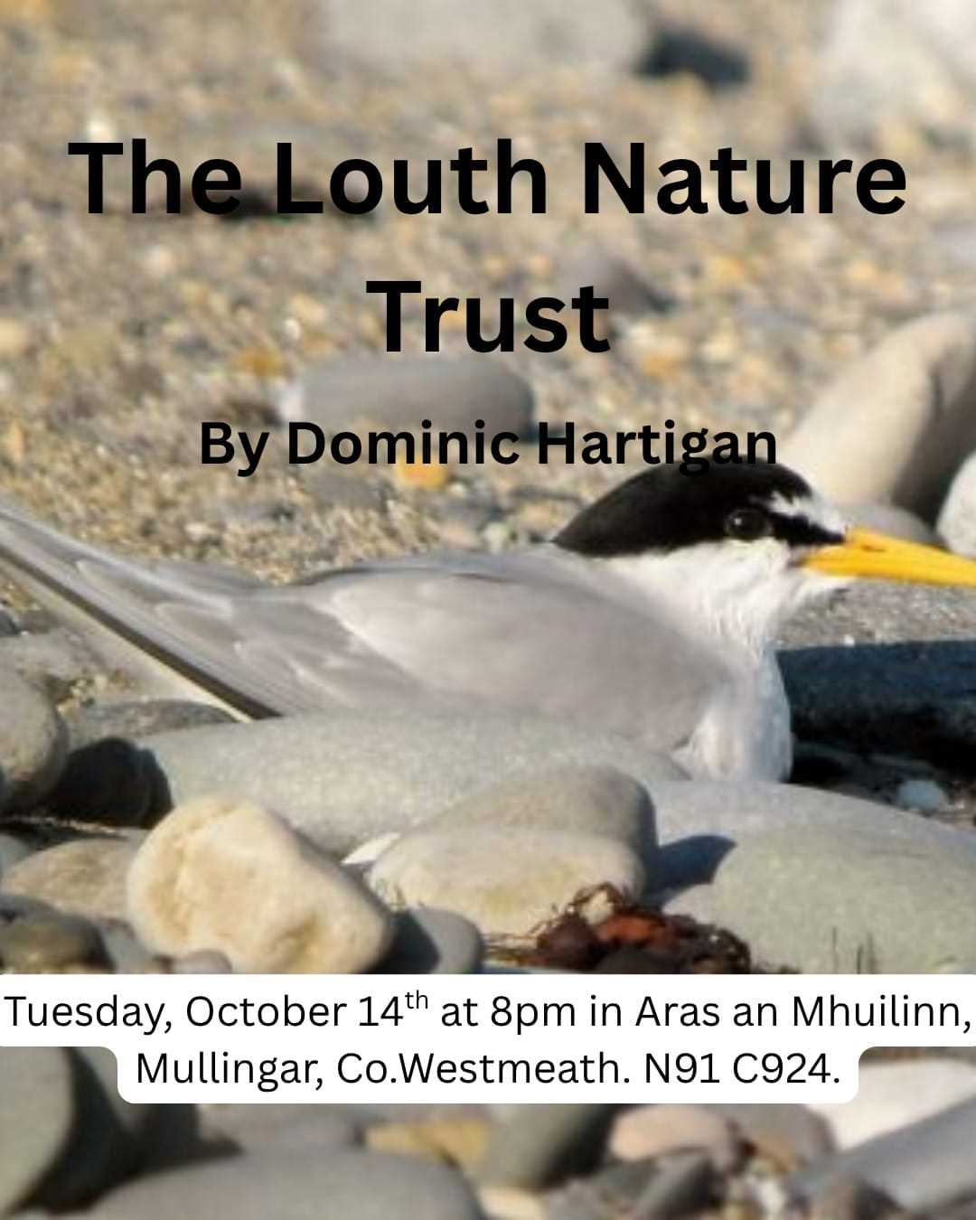 On Tuesday October 14th Dominic Hartigan of the Louth Nature Trust will give a talk on the Little Tern colony at Baltray.